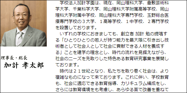 加計学園も公式サイトで以下のように祝辞を掲載しています。