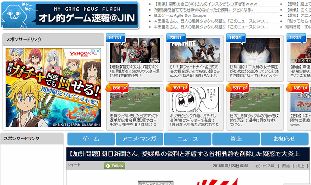 また、BUZZAP!でも繰り返し批判している悪質まとめサイトオレ的ゲーム速報@刃は「【加計問題】朝日新聞さん、愛媛県の資料と矛盾する首相動静を削除した疑惑で大炎上 _ オレ的ゲーム速報@刃」などと、炎上騒ぎとして記事化しています。