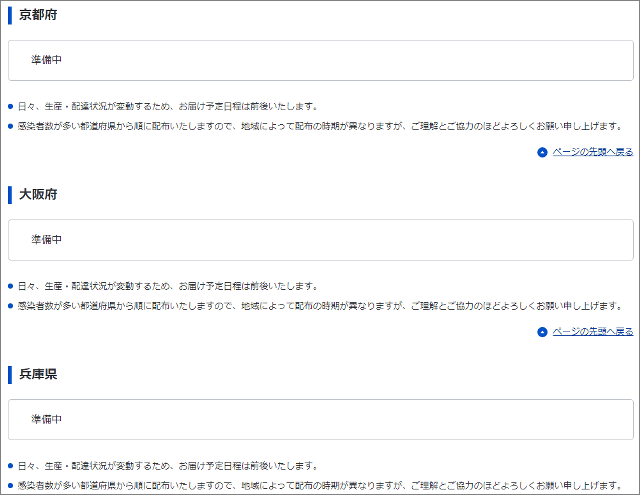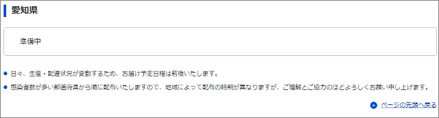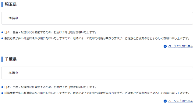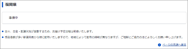 5月7日:東京都での配布終わらず、東京都以外は「準備中」
